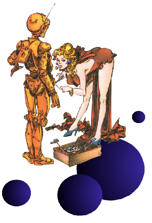 Roboter sind nützliche Gesellen. Auch im Bett. Verkantet sich mal was in der Leistengegend, reicht ein geübter Handgriff. Weltraumbabe Lorna ist angetan. Barbarella ebenfalls (nur Axa nicht, die Spaßbremse).